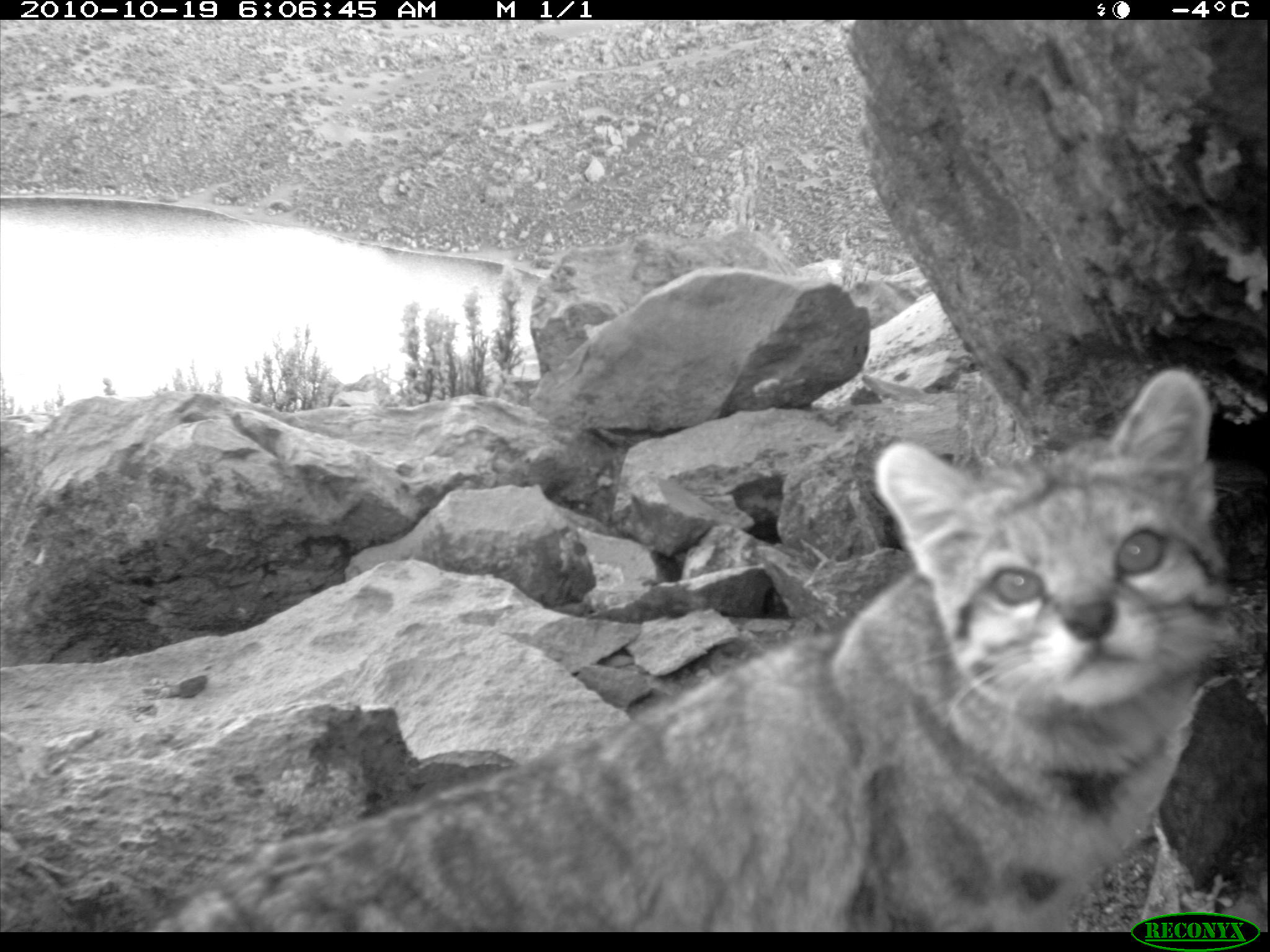The Andean cat (Leopardus jacobita) is an endangered small cat, mainly restricted to the rocky and open, semi-arid and arid treeless areas over 3000 m above sea level at the high Andean plateau of Argentina, Bolivia, Chile and Peru. Main threats for Andean cat populations are related to loss and degradation of the unique altiplanic habitat, such as the desiccation of bofedals (wet meadows) due to water extraction by local mining activities and other human impacts. Andean cat habitat is naturally fragmented and highly fragile, with extreme climatic conditions, scarce vegetation and discontinuous rocky areas where their main prey is found, the viscacha (Lagidium viscacia). The harsh altiplanic conditions along with the Andean cat's low density and elusive behavior makes them very hard to monitor directly (i.e., sightings, live-trapping). In fact, the carnivore community of the altiplano ecosystem on the high Andes, including the Andean cat, Pampas cat (Leopardus colocolo), Culpeo fox (Lycalopex culpaeus) and Puma (Puma concolor), is one of the least studied in the world.