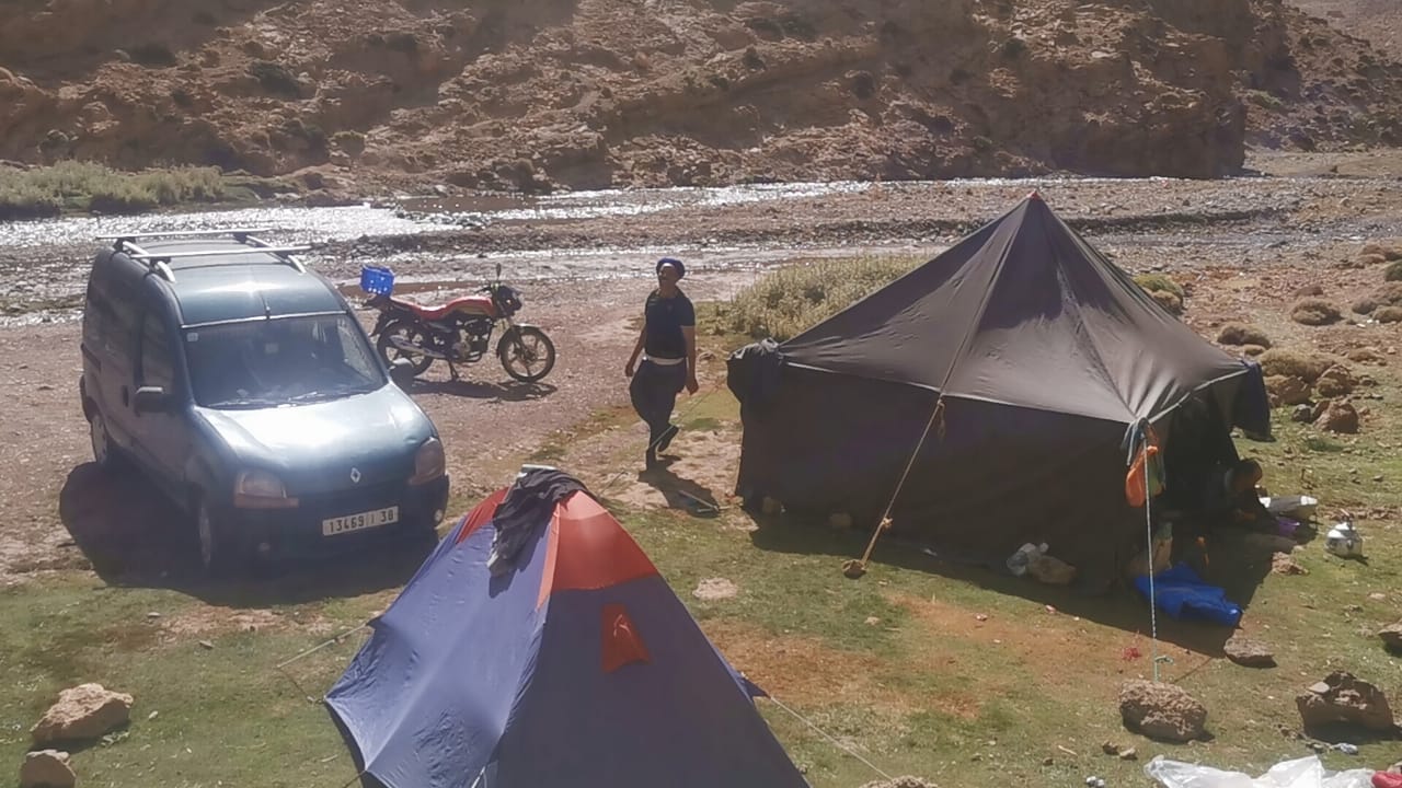 - Another photo showing the disturbance and threats caused by some new campers on the the Aflafal stream in the M'Goun in summer (problems of soil.water pollution, illegal angling and habitat degradatio