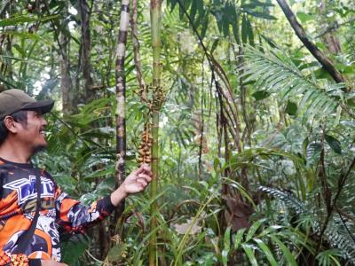 The remaining forests of northern Luzon are known to support floras with high levels of endemicity but largely remains understudied in the Philippines. Notably, the project sites, Mt. Cagua (1,152 masl) in northern Sierra Madre Mtns. and Calanasan, Apayao in Cordillera Mtns. have significant cover of intact lowland to lower montane old growth forests. These areas are principally valued for their vertebrate faunal diversity, including the symbolic Philippine eagle. In contrast, the flora of these forested sites remains largely undocumented or only known from photographs. Pinanga leonardcoi is a recently described species which is unique in its clustered stems with stoloniferous offshoots, 2-3 rachillae with spirally arranged fruits, and fruiting perianth with imbricate calyx lobes. This palm is categorized as Critically Endangered due to its rarity in the wild - with only eight mature individuals and is thought to be only confined within the caldera of Mt. Cagua – which could be instantly wiped out in case of a major eruption. Surprisingly, photographic records show that it might also exist on another mountain range to the west, the Cordillera Mtns., specifically in the lowland forests of Calanasan, Apayao.